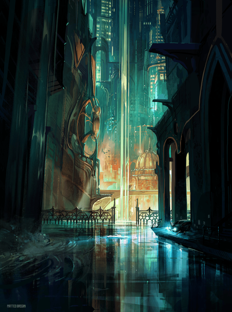 Vemos un callejón en el que de fondo se ven a dos mujeres donde se ponen los cascos. Es un callejón al estilo Nueva York, ya que no hay, ni se esperan vecinos alrededor.… El callejón es oscuro, y de noche.
