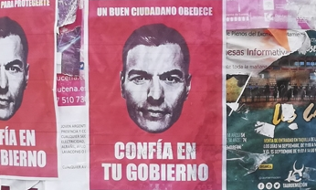 Hay ciertas pancartas o posters en la pared que recuerdan a 1984.