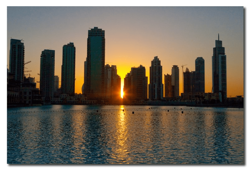 De repente el sol se empieza a vislumbrar entre dos edificios y les sorprende.