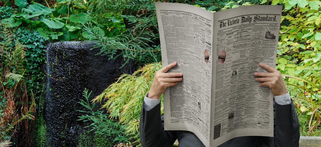 Ray, como si le hubiesen invocado, justo aparece en escena, ataviado intrigantemente, con un periódico abierto tipo espía de los 50’. Baja el periódico y dice