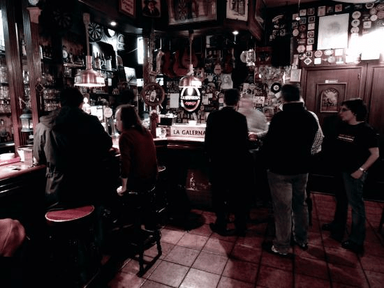 (bebe un trago y mira a su alrededor)