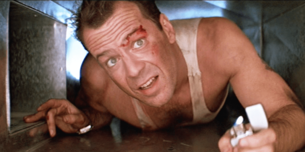 Los extintores sólo pueden actuar por ley 10 segundos, ya sabes que el CO2 malo para el planeta… pero es tiempo suficiente para entrar en el conducto de ventilación.