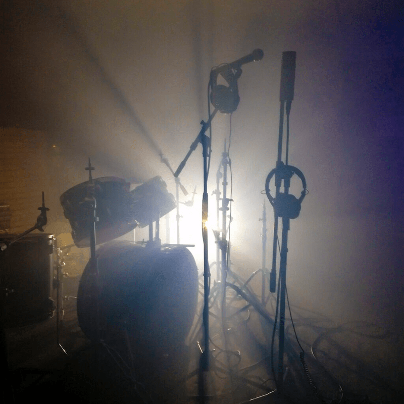 María estira de la manta con dramatismo teatral y se ve efectivamente una batería, una guitarra y un bajo apoyados en un pie de guitarra con una buena alfombra debajo. Suena la música del Héroes III, de encontrar el santo grial.