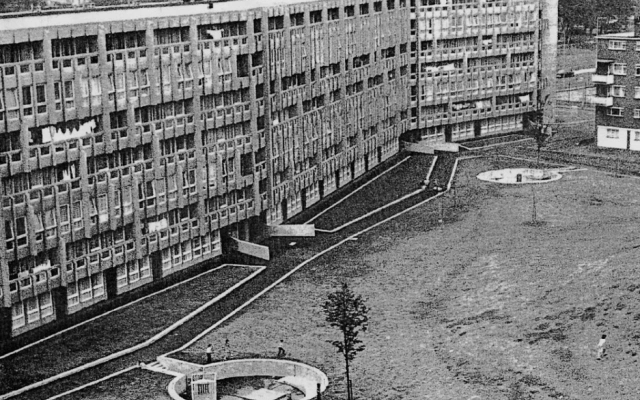 Es de noche, en el portal de un bloque de edificios bastante alto. Está lloviendo, ya que es la continuación de la escena de Galilea, por eso está lloviendo idiota. Quiero decir, que pasa justo después o a la vez.